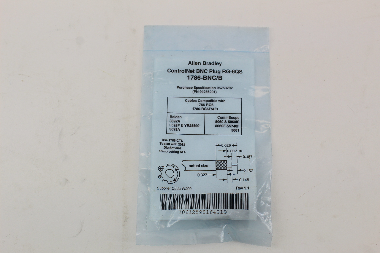 Allen Bradley 1786-BNC/B RG-6QS ControlNet BNC Plug New In Bag