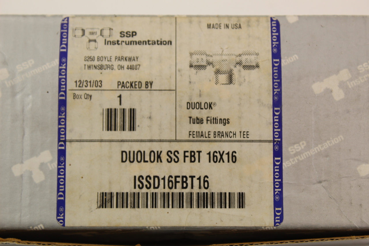 Duolok ISSD16FBT16 SS FBT 16x16 T Tube Fitting Stainless Steel New in Box