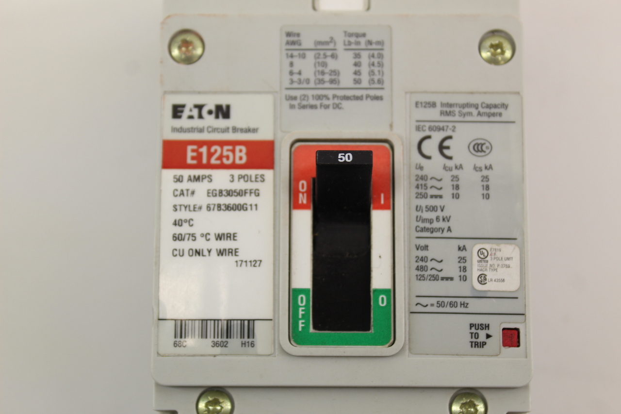 Eaton EGB3050FFG Breaker 50A 3P Circuit Breaker