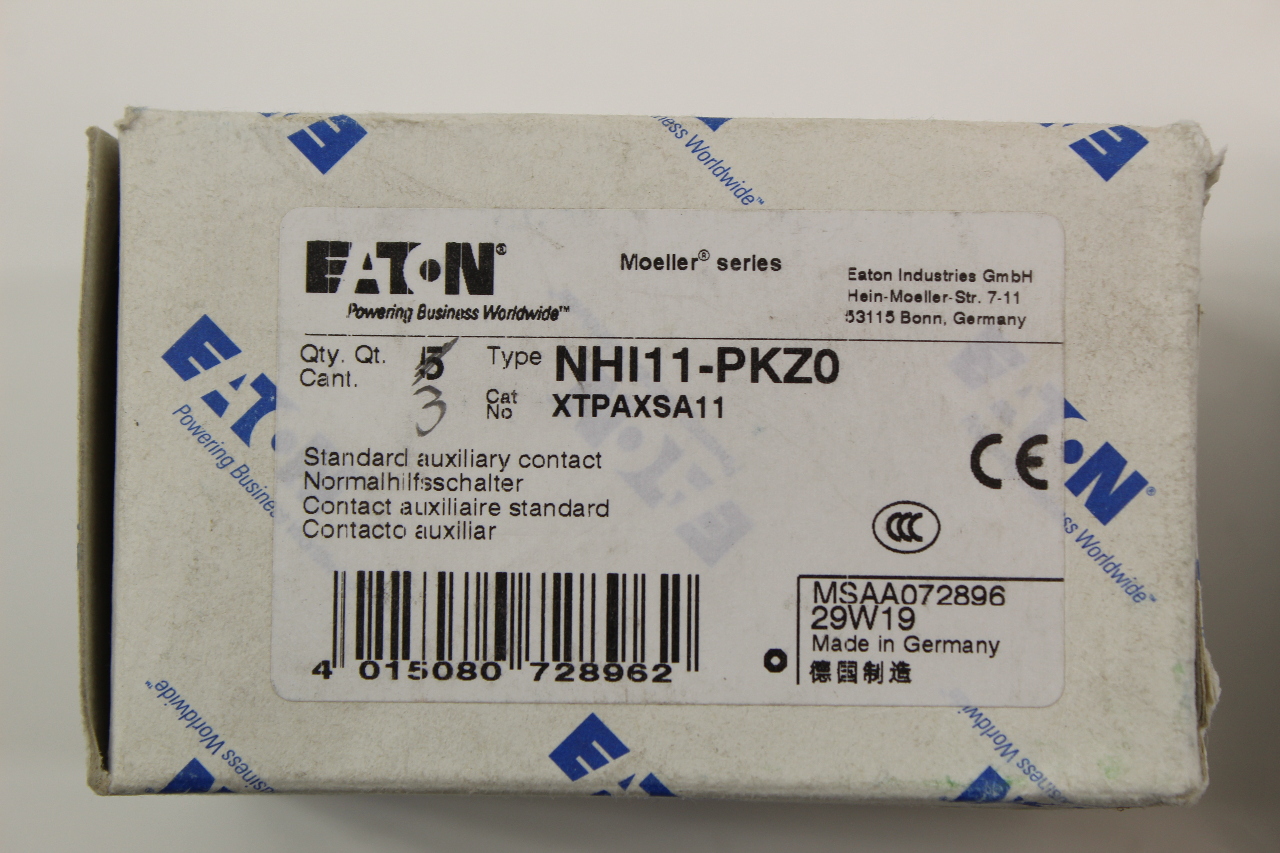 Eaton NHI11-PKZ0 XTPAXSA11 Standard Auxiliary Contact (Lot of 3) New in Box