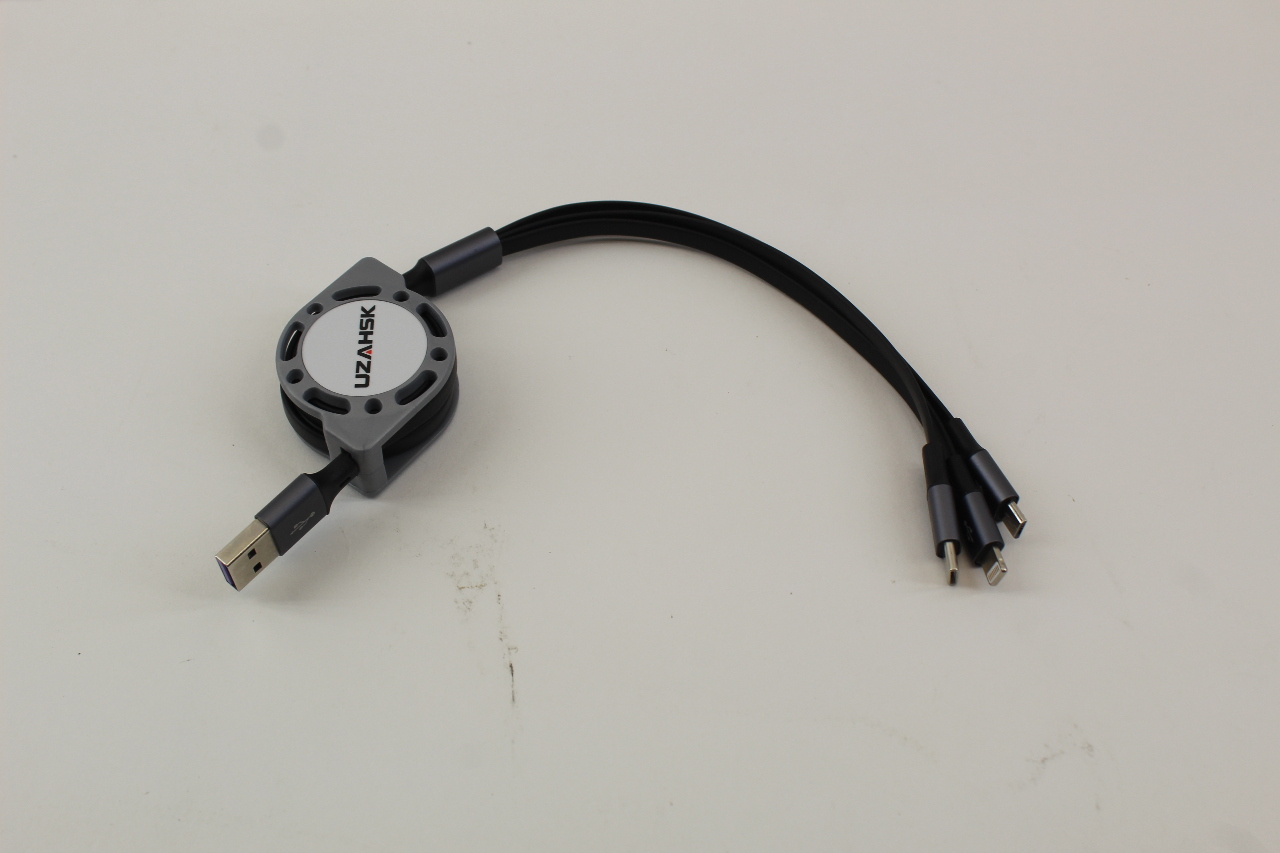 Quan 1 USB-A to USB-C / iPhone / Micro USB 45 Black Retract Spool