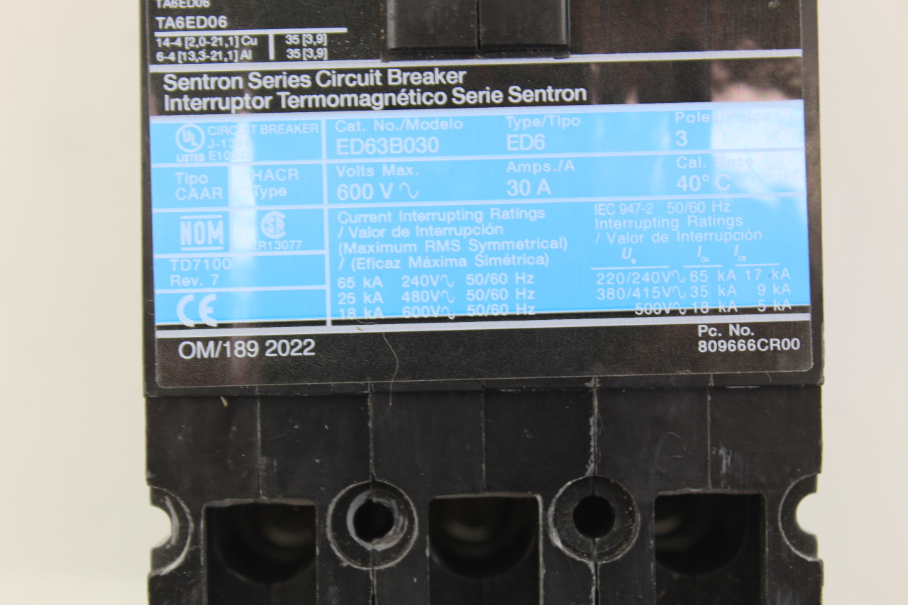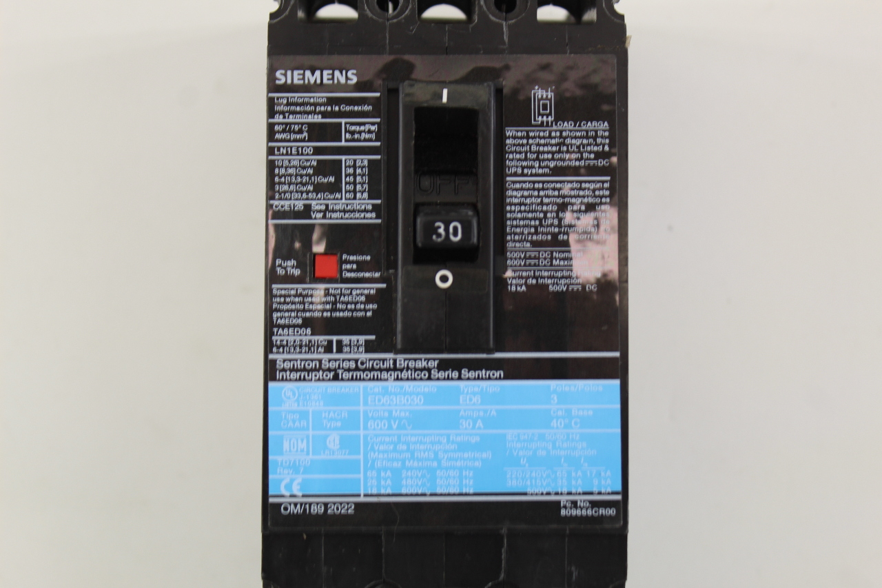 Siemens ED63B030 30amp 3 Pole 600V Circuit Breaker