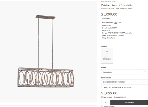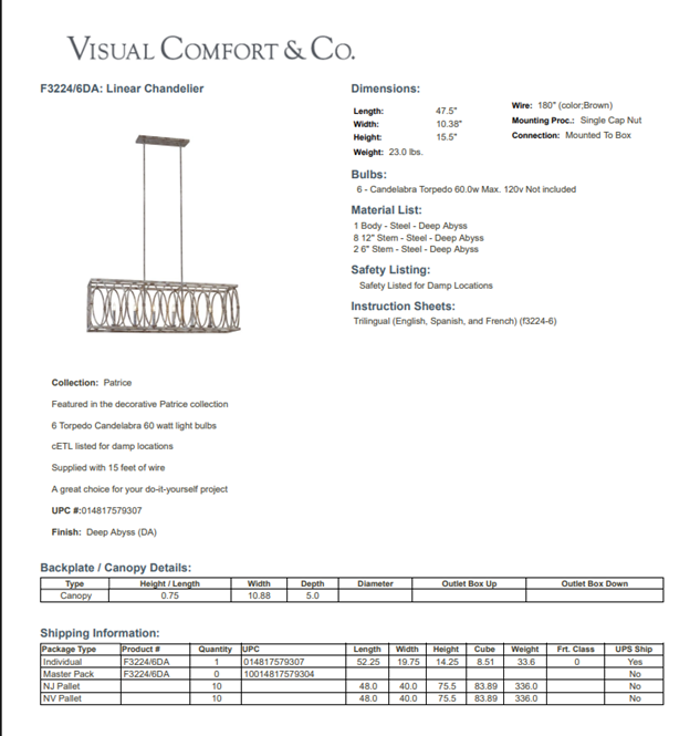 Visual Comfort & Co. Patrice Linear Chandelier New In Box